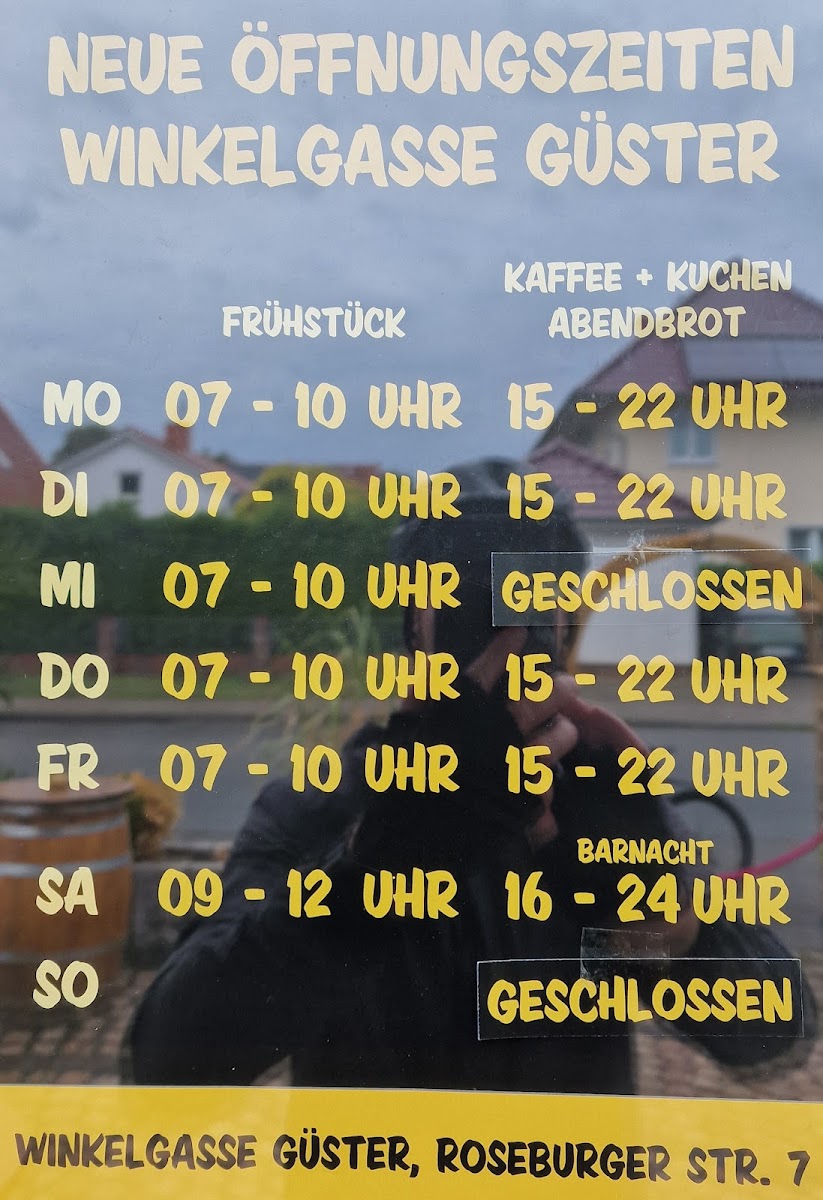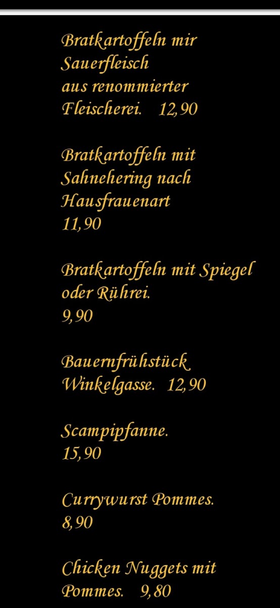 The menu at zur Winkelgasse - Güster offers a selection of food and beverages suitable for various occasions including breakfast, coffee breaks, and light meals. Visitors can find traditional cafe options alongside bar beverages.